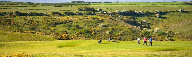 Nature has been kind to Southerndown and ´natural´ is the word most often used to describe it. No trees or water hazards, just bracken, gorse, bunkers and wind! As you stand on the first tee looking across the sea to Porthcawl and the giant sand dunes, which border the Ogmore River valley, imagine the centuries of fierce sand storms which have given Southerndown its downland-links character – its undulating fairways, fine grasses and tight lies. It´s no surprise that the course drains quickly and rarely closes in bad weather.